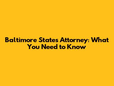 Baltimore State's Attorney: What You Need To Know