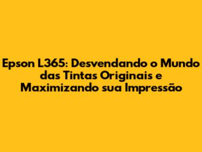 Epson L365: Guia Completo Para Tintas Originais E Impressão Perfeita