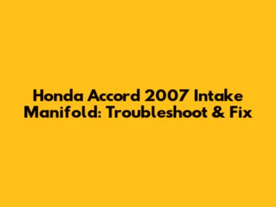 Honda Accord 2007 Intake Manifold: Troubleshoot & Fix