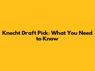 Knecht Draft Pick: What You Need To Know
