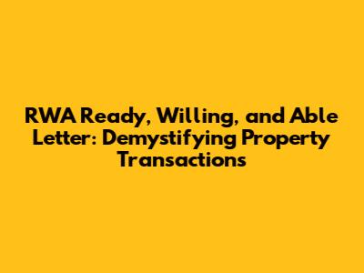 Hey everyone! Ever heard of a Ready, Willing, and Able (RWA) letter? If you're diving into the world of real estate, especially in India, it's something you'll likely encounter. Think of it as a crucial piece of the puzzle in property transactions. Let's break down what it is, why it matters, and how it can impact you. This article is your guide to understanding the RWA letter and navigating the real estate process with confidence.