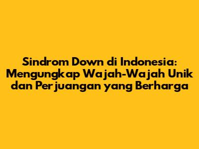Sindrom Down, sebuah kondisi genetik yang memengaruhi perkembangan seseorang, hadir dengan beragam wajah di Indonesia. Artikel ini akan mengupas tuntas tentang sindrom down, mulai dari karakteristik fisiknya yang khas hingga perawatan dan dukungan yang dibutuhkan oleh individu dengan kondisi ini dan keluarga mereka. Mari kita selami lebih dalam dunia sindrom down di Indonesia, memahami tantangan yang dihadapi, serta menggali harapan dan peran penting masyarakat serta orang tua dalam memberikan kehidupan yang berarti.